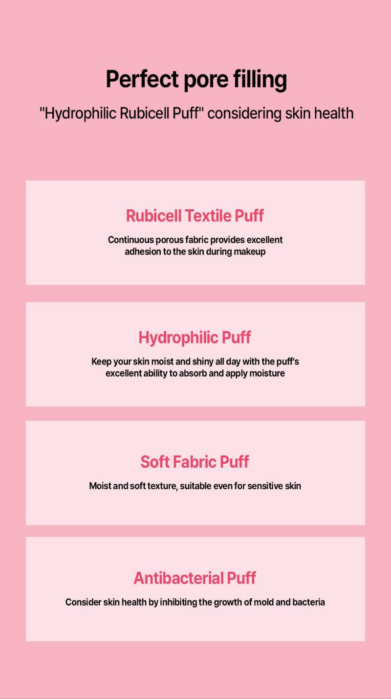 A luxurious makeup puff designed to deliver a flawless, airbrushed finish. Made with Rubycell, a premium antibacterial material, it ensures a clean, hygienic, and smooth makeup application every time.